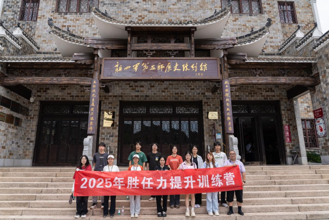 6月15日,党委学生工作部2025年胜任力提升训练营开展了第三场实践教学——“追寻红色足迹·传承铁军精神”乡村振兴研学活动。营员一行13人在指导老师刘祚衡的带领下,来到有“武汉抗战第一村”之称的黄陂区姚家山村,参观了新四军第五师历史陈列馆、李先念故居等红色胜迹,还参访了沿河村“乡巴克”稻田咖啡馆,探索乡村振兴新样态。