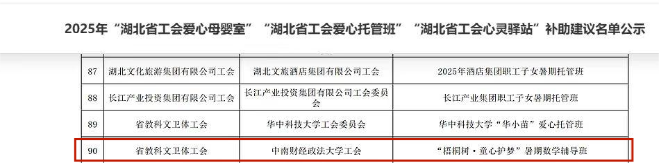 近日,湖北省总工会公示2025年“湖北省工会爱心母婴室”“湖北省工会爱心托管班”“湖北省工会心灵驿站”补助建议名单,统计与数学学院联合校工会、妇委会开展的“梧桐树·童心护梦”暑期数学公益辅导班项目成功入选。这一荣誉既是对项目三年服务成效的权威肯定,也为其深化发展注入强劲动力。